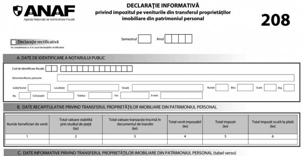 Da. Platforma generează și validează Declarația 208, însă transmiterea către ANAF se face în continuare prin canalele oficiale folosite deja de biroul notarial.